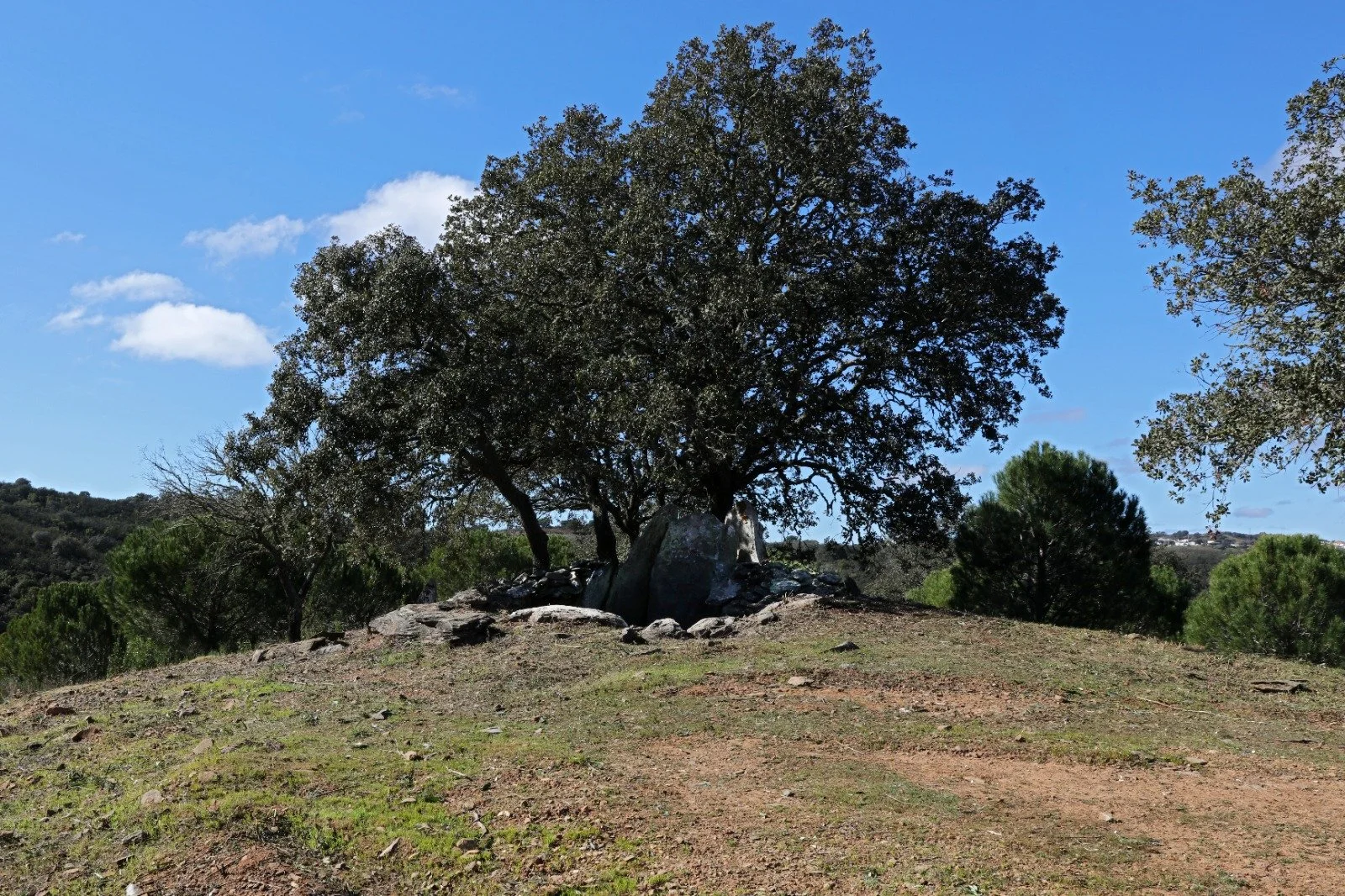 The trail starts next to the old primary school in Corte de Ouro and takes the path to the right after entering the village, which descends to the valley, in a southerly direction. This path joins a wider one and you reach the paved road that leads to Aldeia Nova. You reach a footpath that leads down to the ravine of Pé Corso, you reach the fountain of Pé Corso and the junction with Connection 6 of the Via Algarviana. From this point, turning right, continue south along a path that follows a water line, always along the main path, you reach a crossroads, at which the Anta de Beringel is indicated. A little further on, the trail diverges from the link that turns left and continues straight ahead towards the Ribeira da Corte, following the left bank and crossing it 50 metres further on.